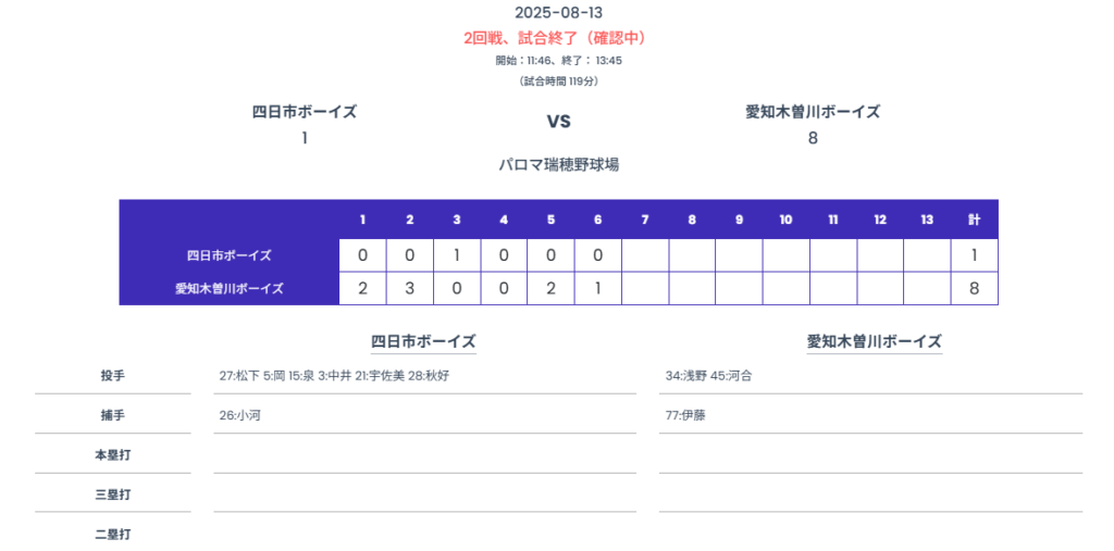 第31回日本少年野球ゼット旗争奪大会 2回戦