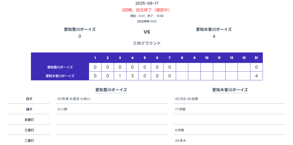 東海理化旗・ゼット杯争奪 第21回 ボーイズリーグ選抜愛知県東大会 2回戦